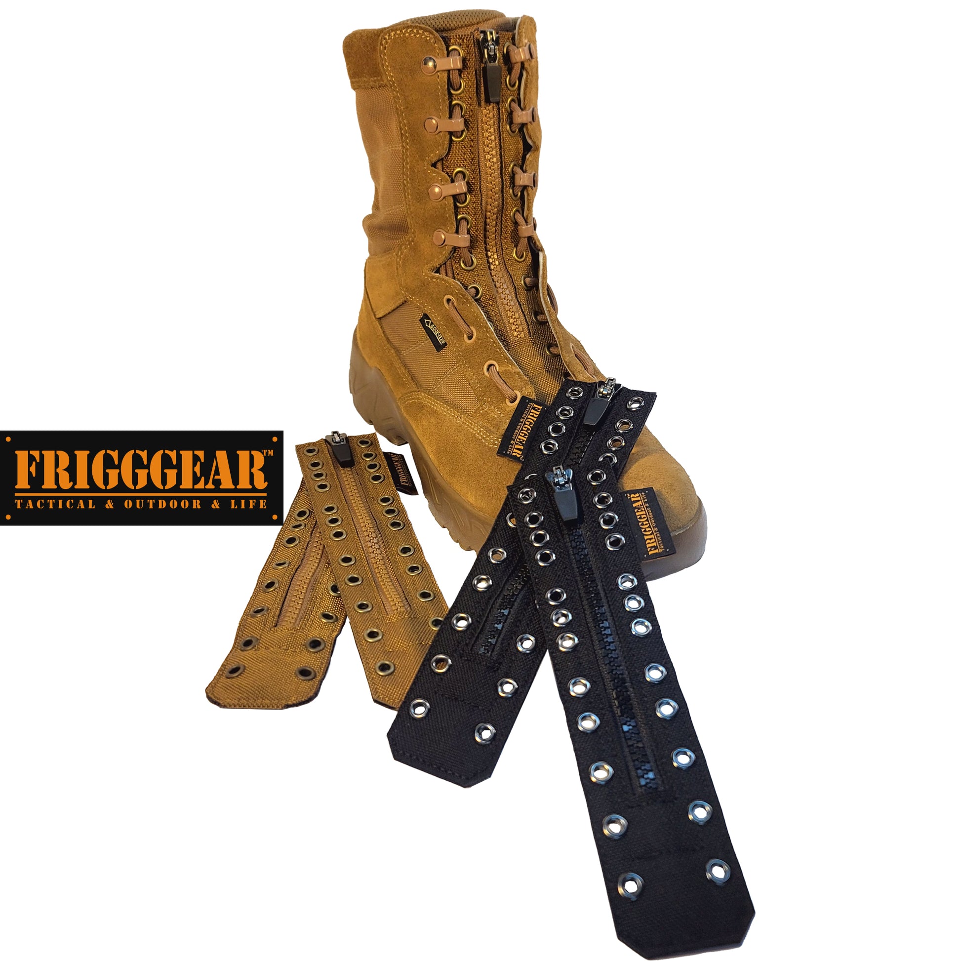 Experience the ultimate convenience with FRIGGGEAR's 12-eyelet zipper kit and pad for combat boots. No more tying laces—just zip up and go. The 3D ergonomic design ensures a perfect fit for enhanced mobility, while the secure locking zipper and premium materials guarantee durability, comfort, and style in action.